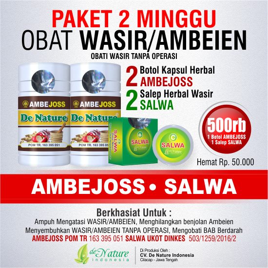 Obat Wasir Herbal Tanpa Efek Samping Herbal De Nature membuat komposisi dan manfaat obat herbal yang sama dengan obat tradisional jawa yang di buat dan di kemas dengan teknologi modern.Kami perusaahan Herbal De Nature Indonesia berkerjasama dengan ahli obat herbal menciptakan obat yang aman tanpa efek samping dan ketergantungan obat terdaftar di badan pom indonesia bersertifikat dan halal aman di konsumsi bagi anda yang memiliki penyakit komplikasi.